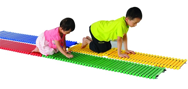 組件:由塑橫桿組成的步道,每組4串4種顏色,可互相串聯(lián),讓幼兒在上面盡情爬、走、跳、刺激孩子腳底神經(jīng)及全身觸覺感應(yīng)