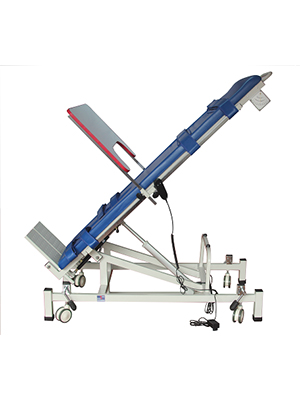 使用時,先將電動起立床呈平躺位,將患者躺于其上,在胸部和腿部各綁約束帶,將起立床緩慢升起,初次約升至30度左右,觀察患者是否適應此高度,擺正患者站立姿勢,注意觀察患者的表情和血壓,若血壓下降或表情痛苦,便將起立床放平休息。在電動起立床上每天可站立2次,每次30分鐘,在患者適應此角度之后,可將起立床每次以5度的速度調整。在患者站立過程中必須有家屬在床旁陪伴,以防止患者跌倒。患者站床時間結束后,將電動起立床放平,不要急于讓患者下床,先讓患者在起立床上躺著休息10分鐘,防止患者體位性低血壓。